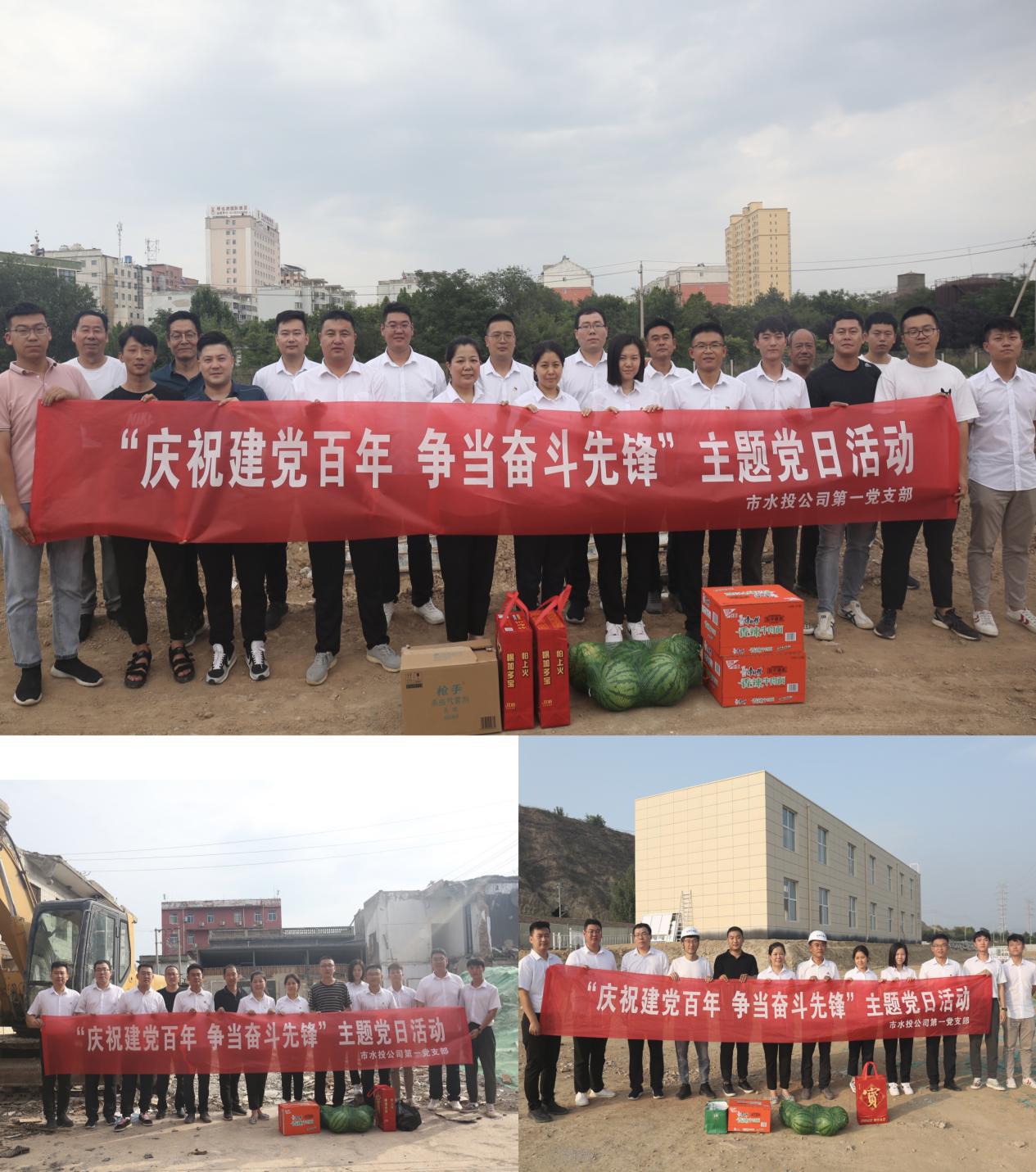 在建黨一百周年之際,為充分表達(dá)黨組織對(duì)一線黨員干部群眾頂酷暑、戰(zhàn)高溫,攻堅(jiān)克難抓建設(shè)的工作干勁的鼓勵(lì)和肯定,對(duì)一線黨員干部群眾的生產(chǎn)生活提供一定的幫助,為他們送去組織的關(guān)心和關(guān)愛,在學(xué)習(xí)活動(dòng)結(jié)束后,支部部分黨員、入黨積極分子共同來(lái)到干河綜合治理工程3標(biāo)段項(xiàng)目工地、姚暹渠禹都段項(xiàng)目工地和鴨子池項(xiàng)目工地,詳細(xì)了解各段施工進(jìn)度及存在的困難問題,現(xiàn)場(chǎng)溝通交流、積極出謀劃策,同時(shí)為各項(xiàng)目工地黨員干部群眾送上了西瓜、飲料、防蚊液、花露水等消暑品。