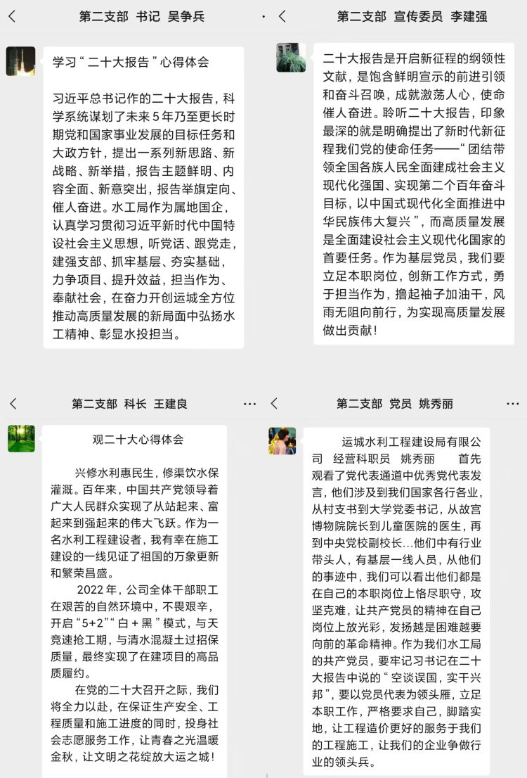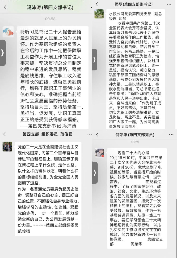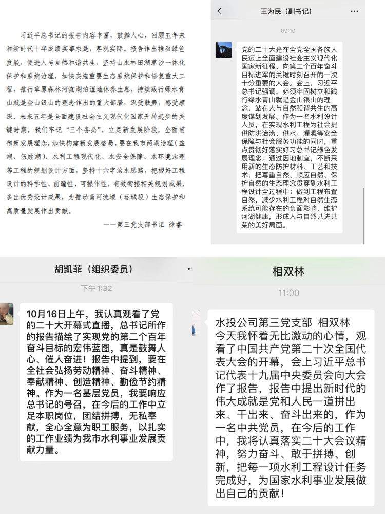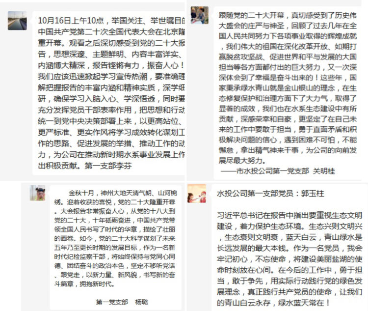 習(xí)近平總書記的報告中指明了生態(tài)文明建設(shè)的重要意義,特別強調(diào)了要“推動綠色發(fā)展,促進人與自然和諧共生”,令人振奮、催人奮進,大家紛紛感言,要把黨的二十大精神作為當(dāng)前和今后一項重要政治任務(wù),要學(xué)以致用,立足本職崗位,突出工作重點,用黨的二十大精神指導(dǎo)實踐,做好中心城區(qū)重點水系項目推進工作,推進黑臭水體治理,強化水質(zhì)提升,解決城區(qū)排澇問題,把黨的二十大精神轉(zhuǎn)化為推進公司發(fā)展的強大動力和生動實踐,努力在新時代新征程上展現(xiàn)新氣象新作為。
