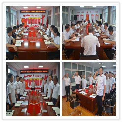 全體參會(huì)人員面向黨旗唱國歌,重溫入黨誓詞,齊誦《黨章》總綱9~11自然段。