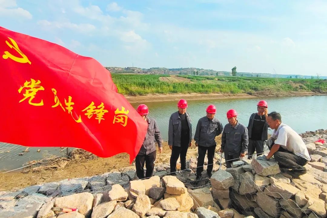 ▲公司黨員志愿者在鹽湖22號堤埝接待調(diào)研學習團隊