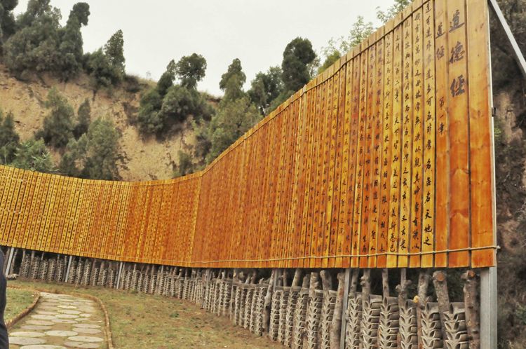 夏日,雨后的清晨,微風(fēng)拂面,清新涼爽,參加活動(dòng)的一行人走在彎曲的山道上。山底的映山園形蓄水池與山腰的半園形碧綠的荷花池遙遙相對(duì),形成了日月相映的自然景觀。繞過(guò)日月池,有一塊山坳地,緊靠山崖,由數(shù)百塊長(zhǎng)條木板豎直排列,正楷書(shū)寫(xiě),組成了老子《道德經(jīng)》的長(zhǎng)幅作品。很有氣勢(shì)。再往上爬,就是《修福第》的〈三益書(shū)院〉,兩旁刻有傳統(tǒng)的長(zhǎng)幅對(duì)聯(lián)。書(shū)院內(nèi)樹(shù)木花草叢中座落著一座二層教學(xué)研究校舍,旁邊有食堂等建筑。
