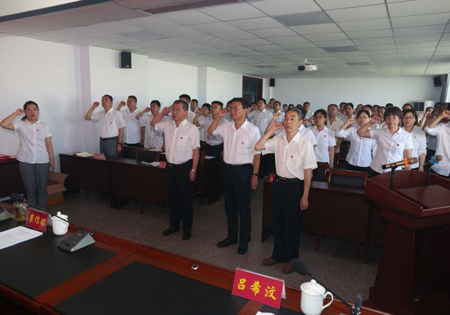 大會在雄壯的國歌聲中拉開帷幕,黨委辦公室主任郝麗娜同志領(lǐng)誓,全體黨員面對黨旗,共同重溫了入黨誓詞。