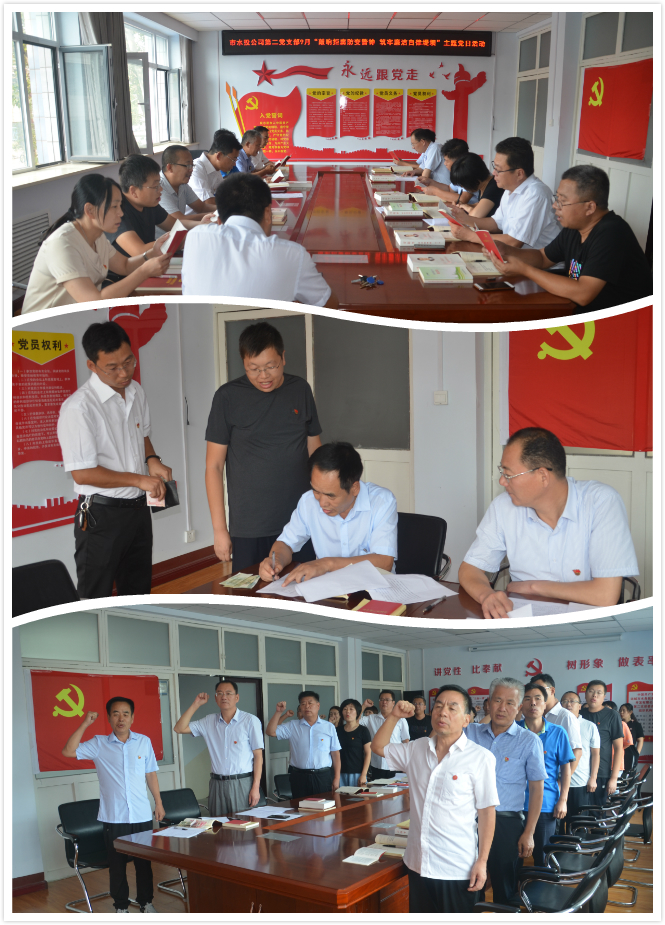 市水投公司第二黨支部8月28日—9月7日開展了“敲響拒腐防變警鐘 筑牢廉潔自律堤壩”主題黨日活動?;顒庸卜秩齻€階段進行,第一階段開展“+”活動,8月28日上午,全體黨員干部來到市廉政警示教育基地參觀學習,接受黨風廉政和反腐倡廉教育,重溫了入黨誓詞,旨在進一步推進全面從嚴治黨落細落實,不斷強化黨紀教育,豐富主題黨日活動內容。第二階段9月3日召開支部委員會會議,討論研究支部8月份工作總結和9月份工作計劃,同時研究9月份支部主題黨日活動方案。