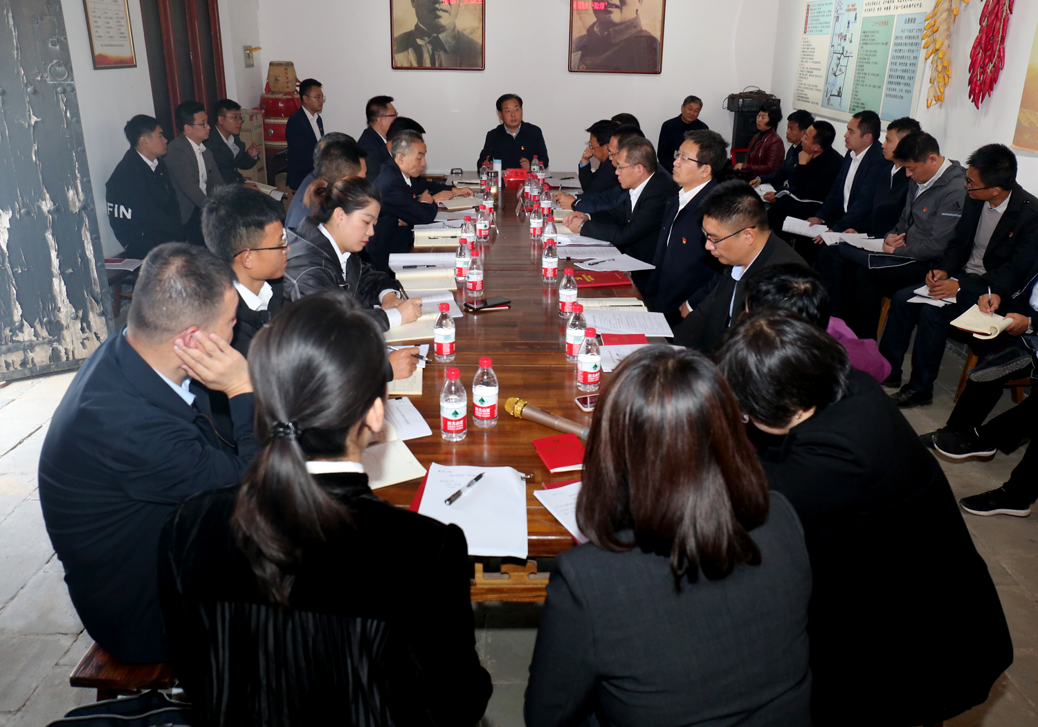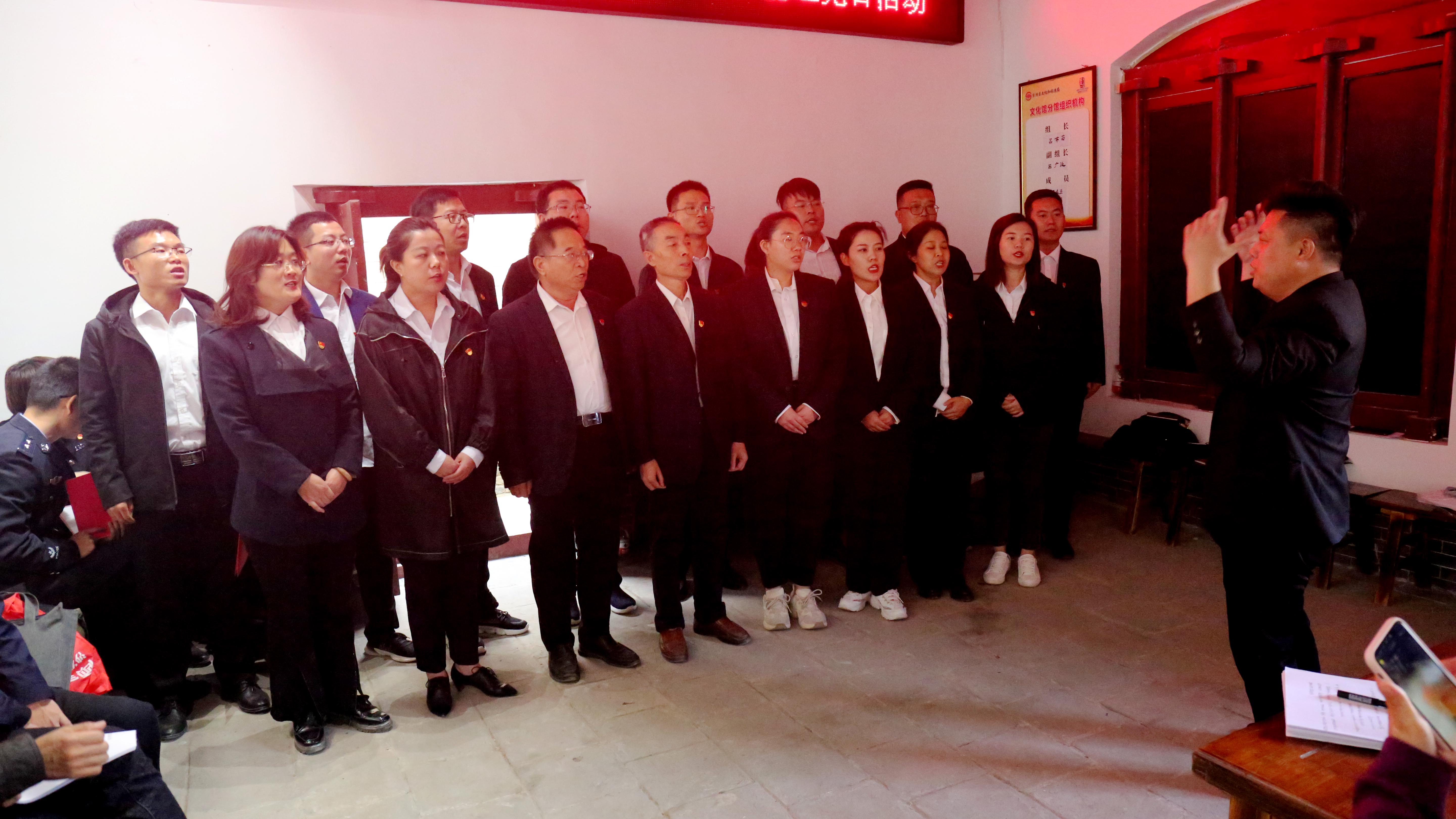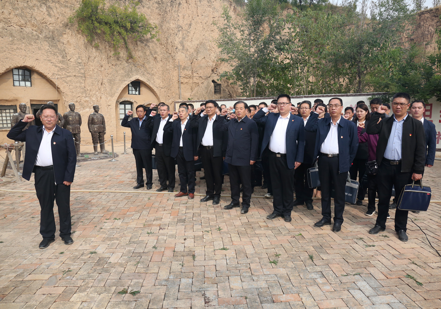 在稷麓縣抗日民主政府舊址,大家參觀了會(huì)議室、傳令班、先鋒亭等革命地點(diǎn),聆聽(tīng)了“大戰(zhàn)火焰山”“夜襲杜梨凹”“楊樊莊突圍”等稷麓烽火故事,深切感受到了稷麓縣政府的柴澤民、金長(zhǎng)庚、趙宜軒、雷震龍等革命先輩攻堅(jiān)克難、不怕?tīng)奚挠⑿蹥飧藕蜔o(wú)私奉獻(xiàn)、敢于勝利的革命風(fēng)范,對(duì)牛莊村為革命事業(yè)所做出的犧牲奉獻(xiàn)有了切身的感受和由衷的感動(dòng)。市委政法委常務(wù)副書(shū)記、機(jī)關(guān)黨委書(shū)記周鑫同志帶領(lǐng)大家重溫了入黨誓詞。