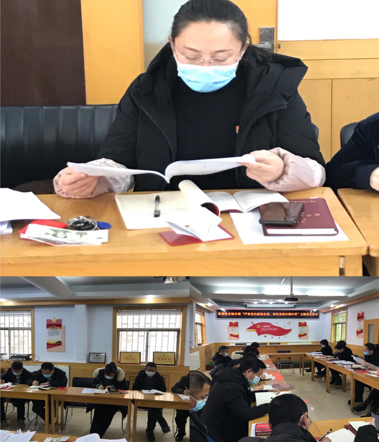 “主題黨日+”的活動,支部開展了組織生活會和民主評議黨員活動。支部書記楊素平同志對上年度查擺問題整改情況、2020年經(jīng)營目標責(zé)任完成情況、2020年黨支部主要工作情況及支部建設(shè)存在問題情況向大家作了詳細報告。并對此次組織生活會前征求群眾意見、查擺的問題,共計支部62條,支委委員90條,經(jīng)匯總整理出的6個突出問題作了原因分析及整改承諾。大家本著出于公心、直截了當(dāng),按照“先書記、后支委、再黨員”的順序,開展了批評與自我批評,達到了“紅紅臉、出出汗”的效果,增強了支部的凝聚力和戰(zhàn)斗力。支部采取無記名投票的形式,進行了民主評議黨員。