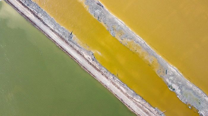 ▲鹽湖中的藻類和鹽水蟲繁殖,造成湖水變幻出各種顏色