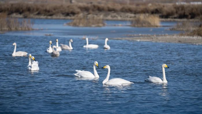 ▲美麗的大天鵝為冬日的鹽湖帶來了無限生機(jī)