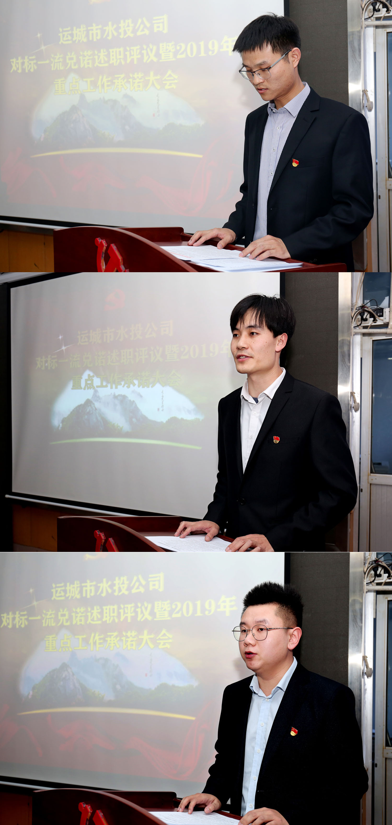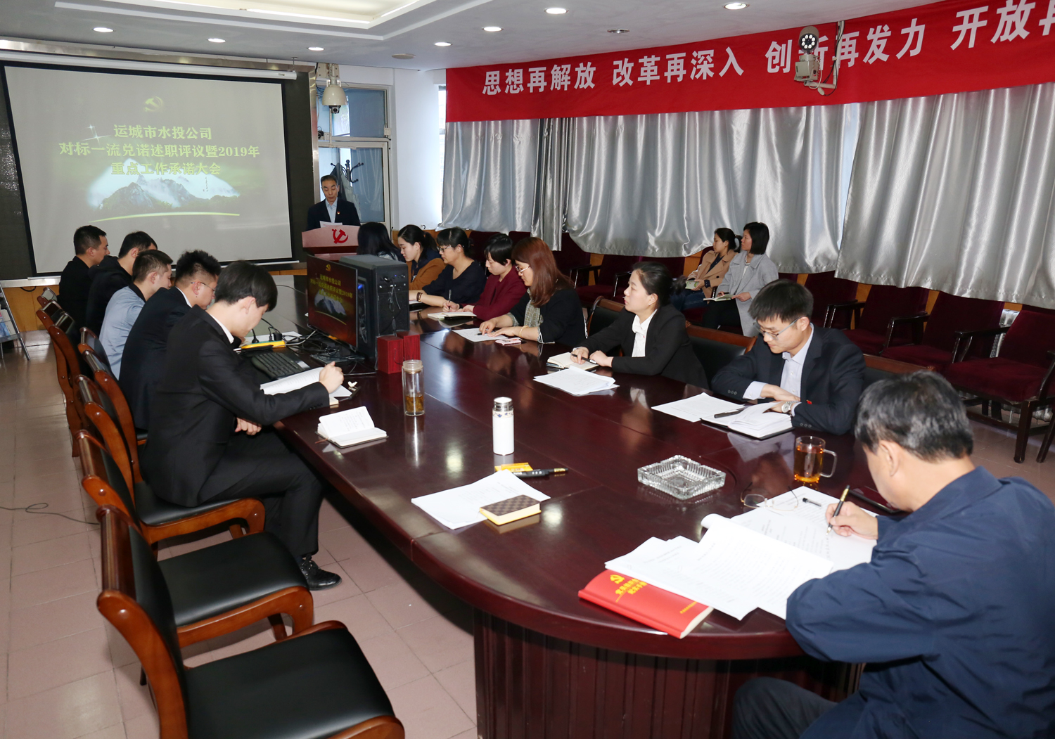 會(huì)上,領(lǐng)導(dǎo)班子副職和黨辦、綜合辦、財(cái)務(wù)部、工程部主要負(fù)責(zé)人圍繞2018年年初承諾事項(xiàng)兌諾述職,就2019年重點(diǎn)工作向公司黨委、董事會(huì)和全體員工進(jìn)行公開承諾。公司班子成員進(jìn)行了點(diǎn)評(píng),參會(huì)人員進(jìn)行了述職測(cè)評(píng)。