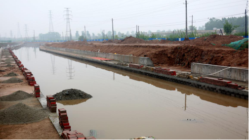 4月8日晚上,因長時間降雨,空港南區(qū)街道排水不暢,大量雨水涌入正在施工中的姚暹渠(空港段)渠道,導(dǎo)致該段建設(shè)工程遭到大面積浸泡。4月9日清晨,接到項(xiàng)目部負(fù)責(zé)人報告后,公司董事長崔作銘率領(lǐng)公司相關(guān)人員冒雨迅即趕赴施工現(xiàn)場,會同項(xiàng)目公司、項(xiàng)目部、設(shè)計單位和監(jiān)理單位,沿渠逐段察看渠底雨水灌注浸泡情況,共商以下六個破解辦法: