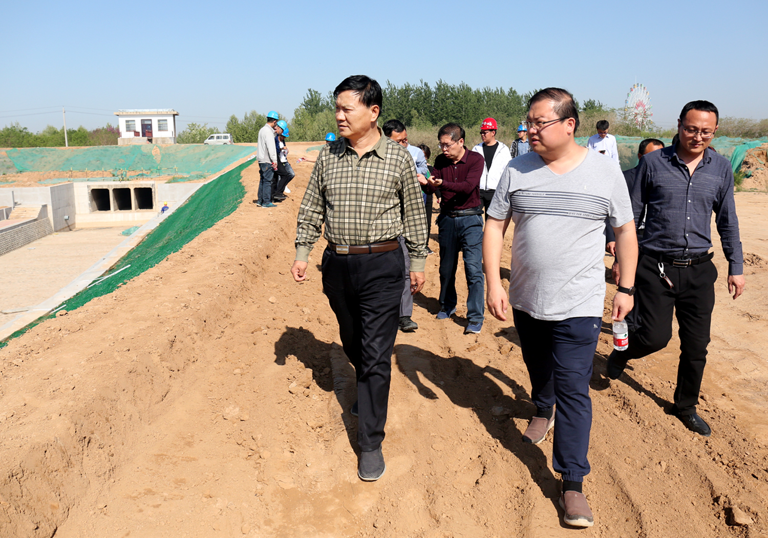 4月份以來(lái),針對(duì)姚暹渠空港段項(xiàng)目施工中雨水浸泡、步道綠化、高壓電塔加固、污水管網(wǎng)重疊等問(wèn)題,公司董事長(zhǎng)崔作銘帶領(lǐng)公司相關(guān)人員多次深入施工現(xiàn)場(chǎng),逐段實(shí)地查看,會(huì)同項(xiàng)目公司、設(shè)計(jì)單位、監(jiān)理單位、項(xiàng)目部,共商破解對(duì)策,提出破解辦法,有效保證了工程建設(shè)順利推進(jìn)。