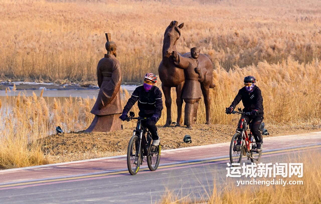剛?cè)雸@就看到極具河?xùn)|特色的風物,一冊竹簡矗立在入口處,“雷澤巨跡”“鯉躍龍門”幾個字入了心。再往深處,亦見豐盈清雅的山水風光。金色的蘆葦叢,波光粼粼的鴨子池,遠處城市煙火氣的剪影,近處清麗婉轉(zhuǎn)的鳥鳴聲……